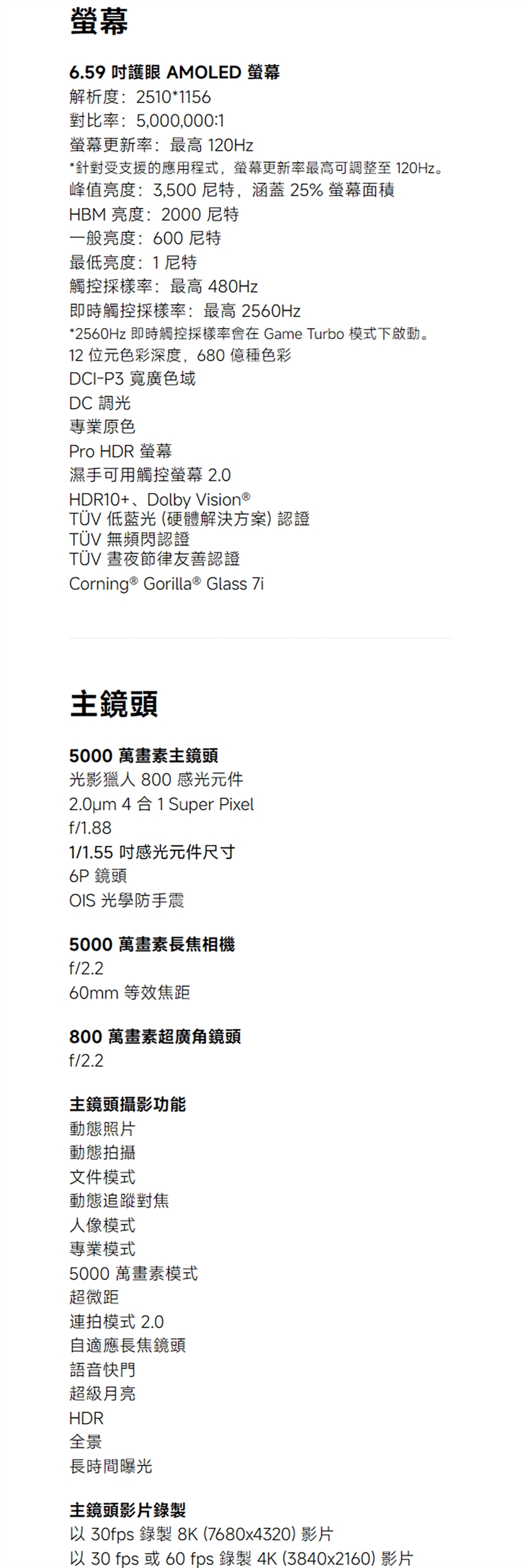 以上規格資料若有任何錯誤,以原廠所公佈資料為準