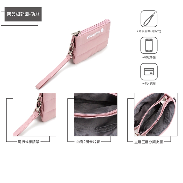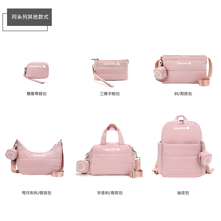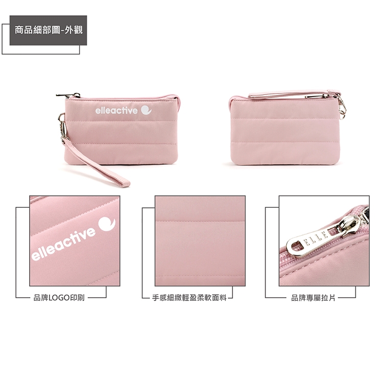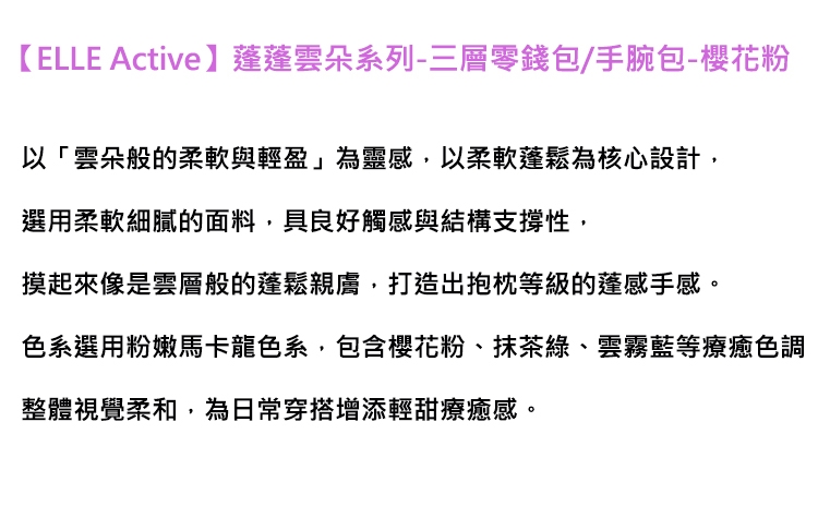 商品品名:【ELLE Active】蓬蓬雲朵系列-三層零錢包/手腕包-櫻花粉