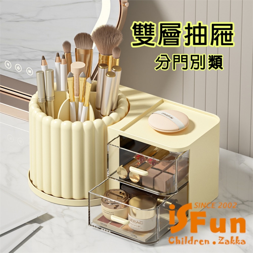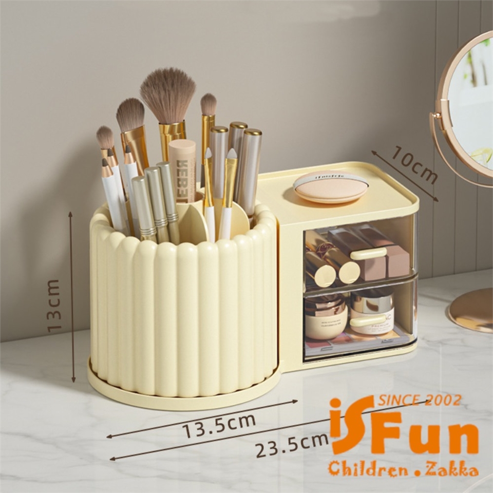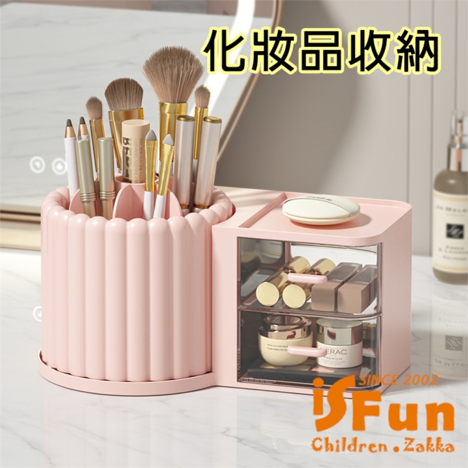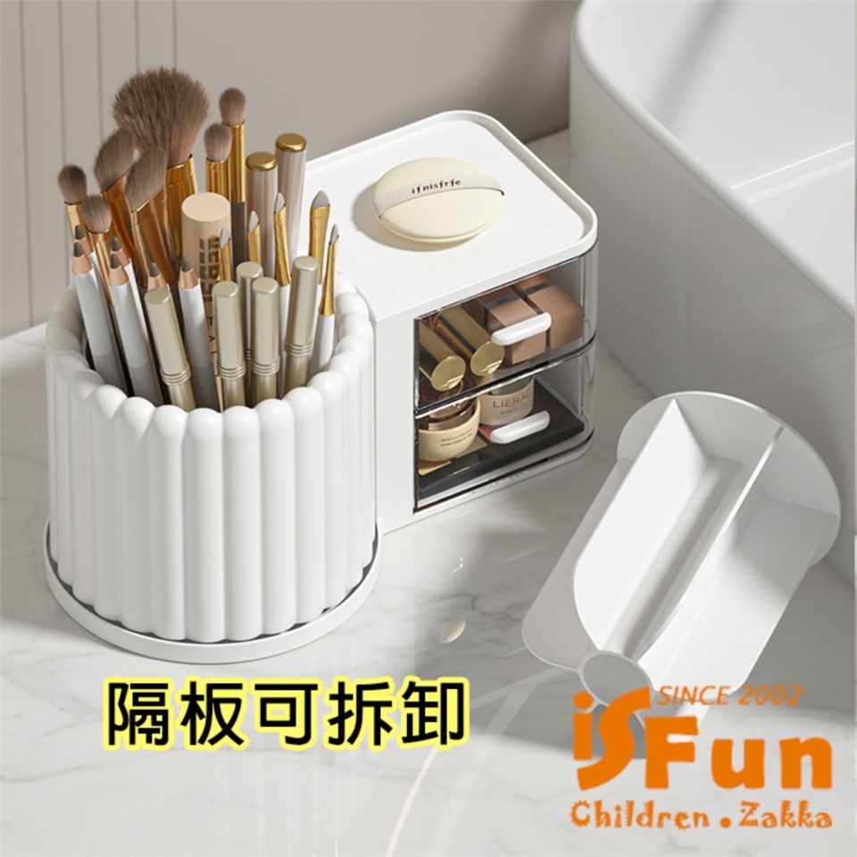 獨特的360°旋轉收納桶設計讓存取化妝品變得更加方便,