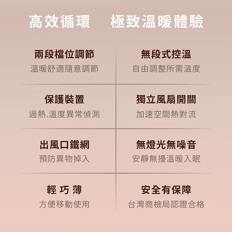 兩段檔位調節,溫暖舒適隨意調節