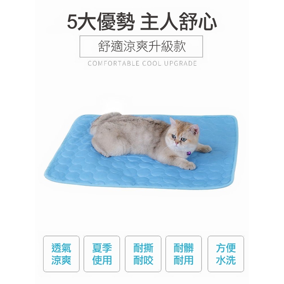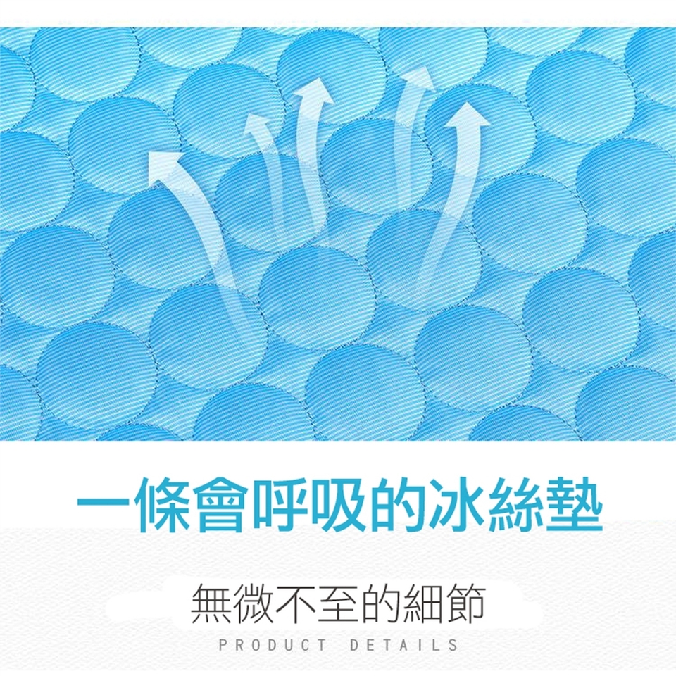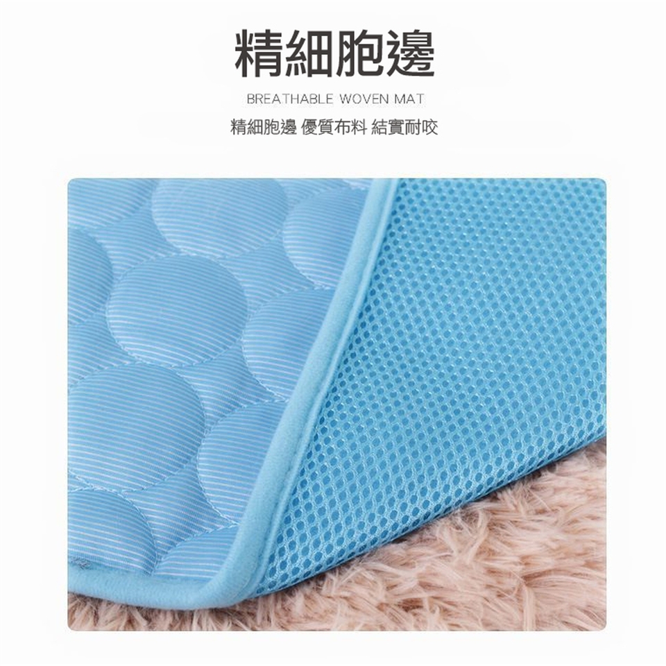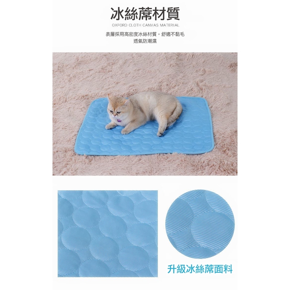 涼感冰絲材質,透氣清爽,觸感柔軟,涼而不冰,吸熱速度快速,細密小孔增強透氣性,精細包邊,不易脫線,可反覆清洗使用,底層透氣網布,透氣防潮速乾,墊子厚度適中,不擔心過薄不舒適,可搭配鋪墊在寵物的床窩裡