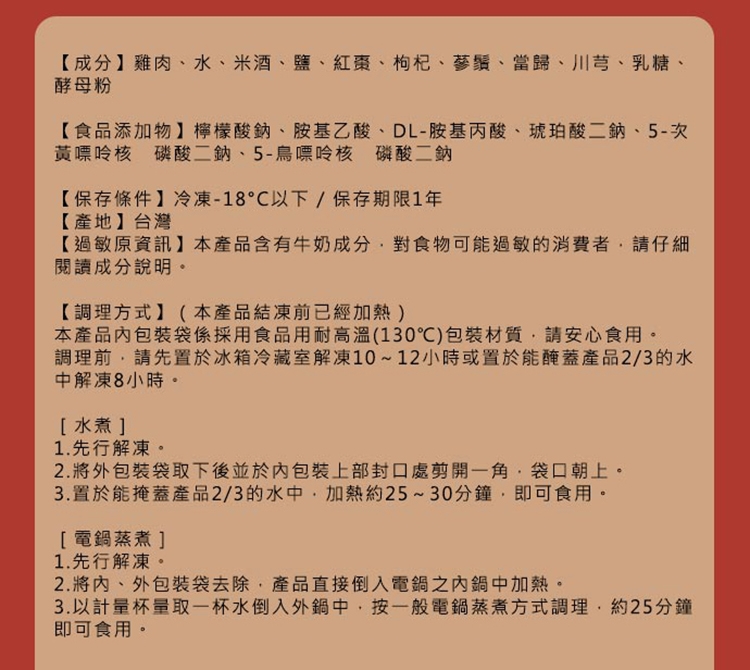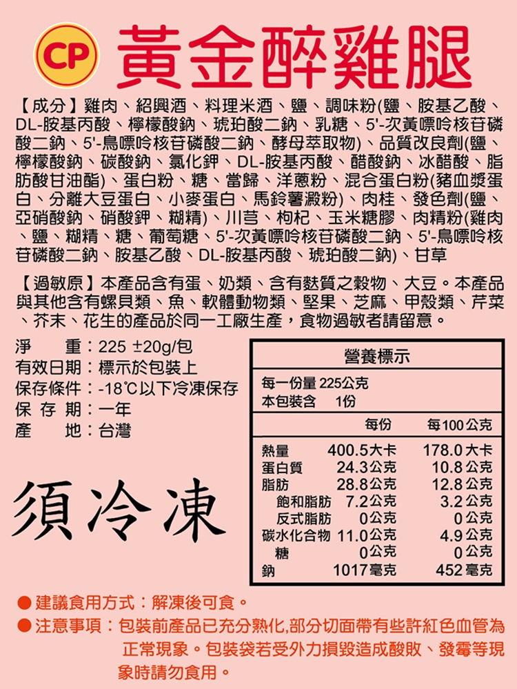 ※ 若部分商品為生鮮冷凍出貨 (例如:魚類/海鮮..等),提醒您需完全加熱至熟之後方能食用。