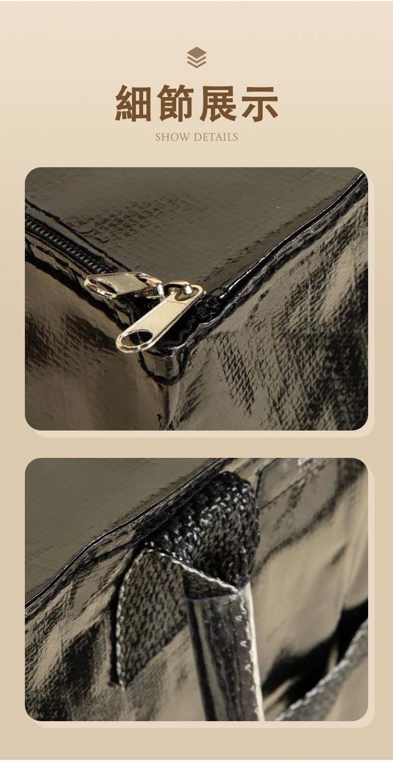 材質:PP 編織面料+亮光覆膜(耐磨、防潑、好清潔)