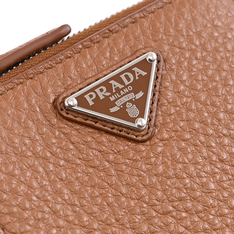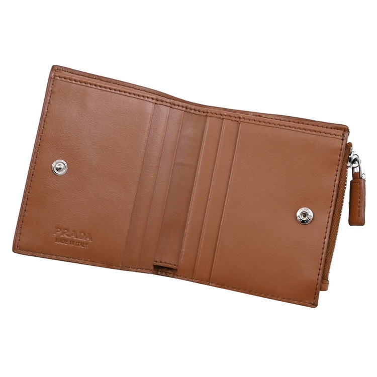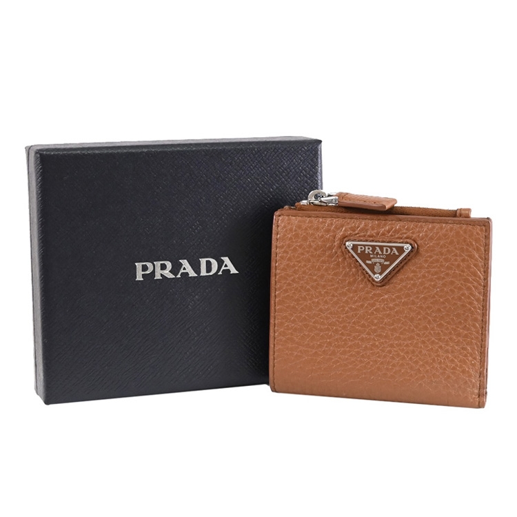 PRADA 專櫃商品零錢短夾,採用經典三角LOGO+柔軟荔枝牛皮材質,簡約都會俐落的造型,時尚有型,對開扣式,內有4信用卡夾+2夾層+1鈔票夾層+1拉鍊零錢袋,熱銷實用款,方便收納,簡約都會的設計款,總是深受潮流人士的愛戴。