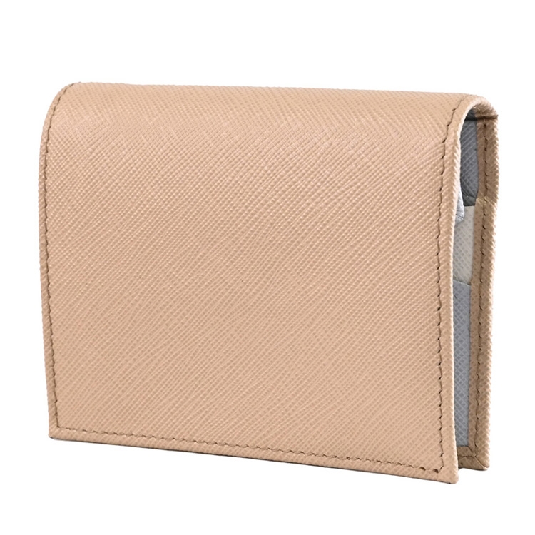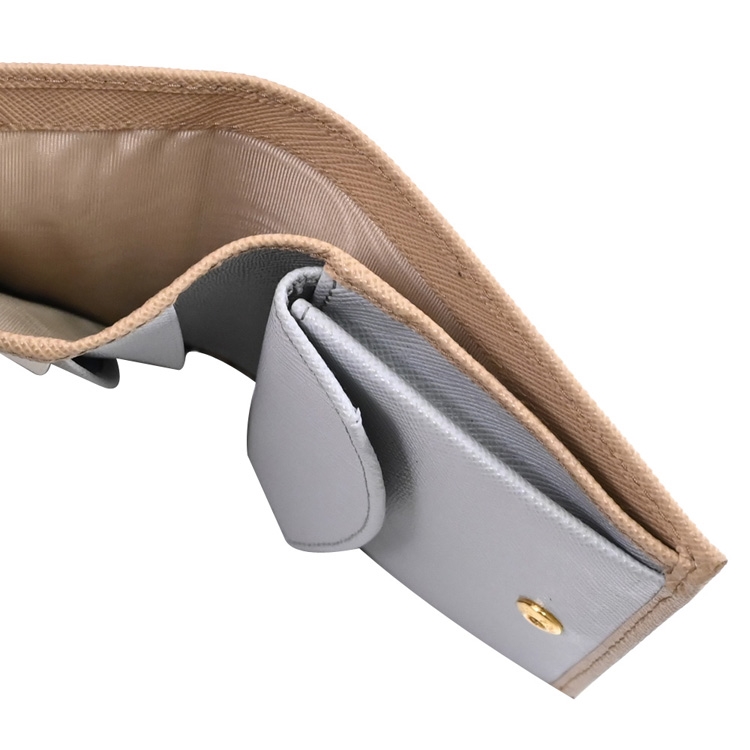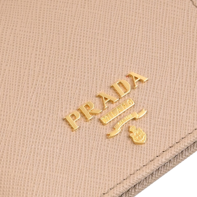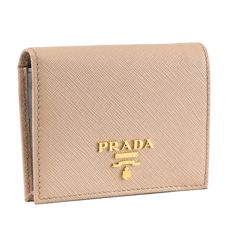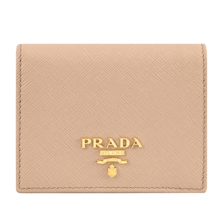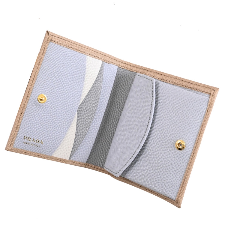 PRADA 專櫃熱銷扣式短夾,經典浮雕LOGO+防刮皮革材質,內裏撞色設計,呈現不凡優雅時尚氣質,扣式開口,內有1鈔票夾+3信用卡夾+2內袋+1扣式零錢袋等可收納,簡約時尚有型,可放小包好收納,精品配件讓時尚氛圍隨處可見。