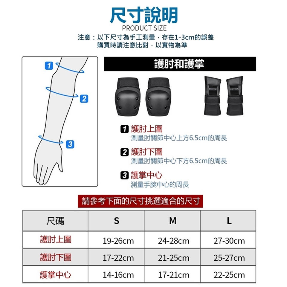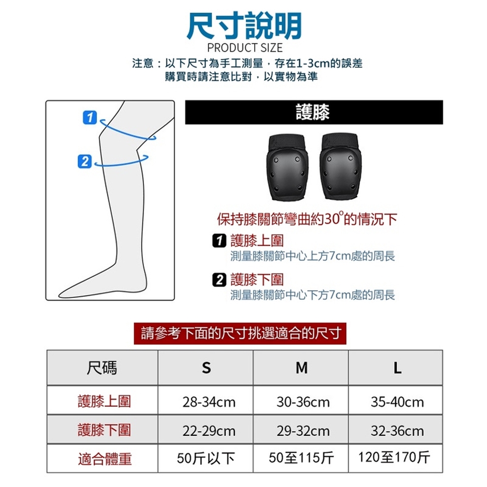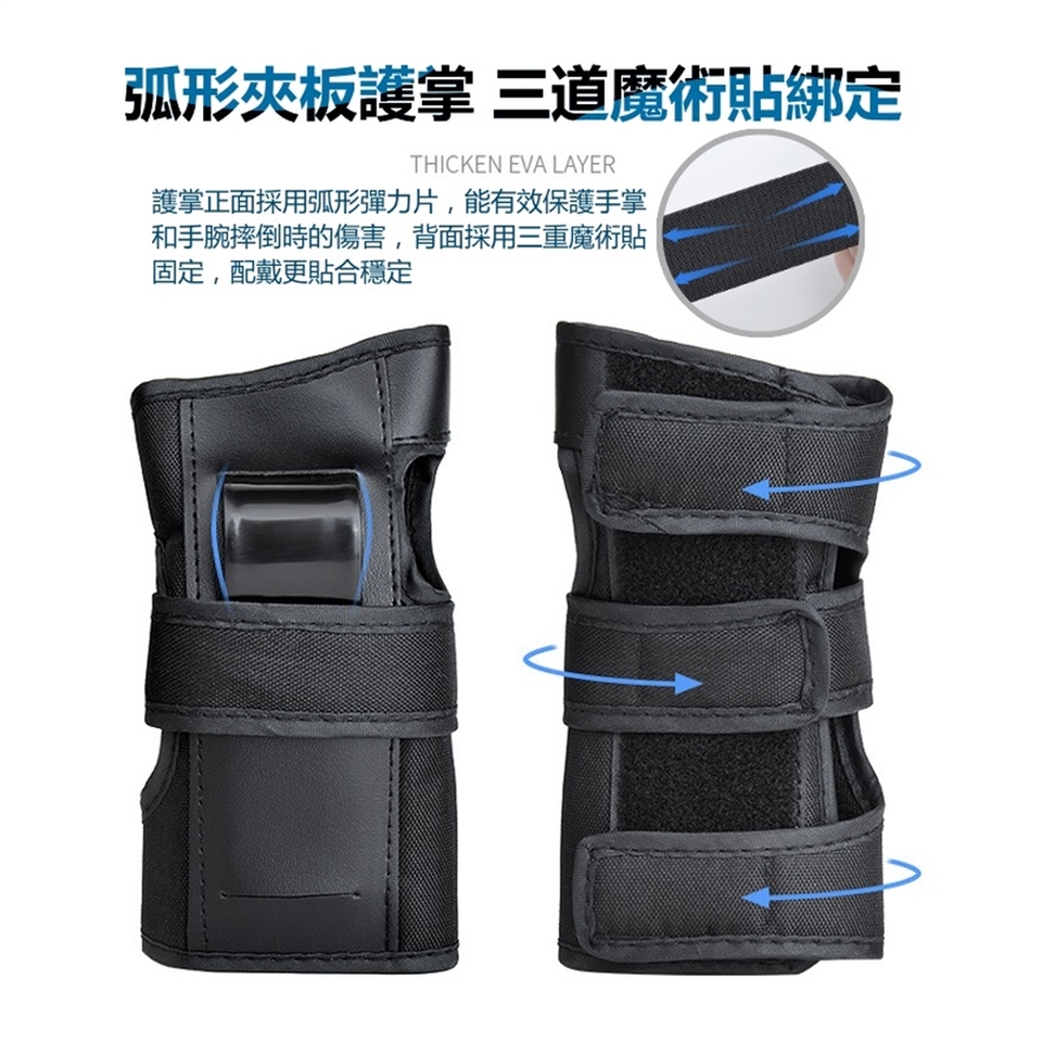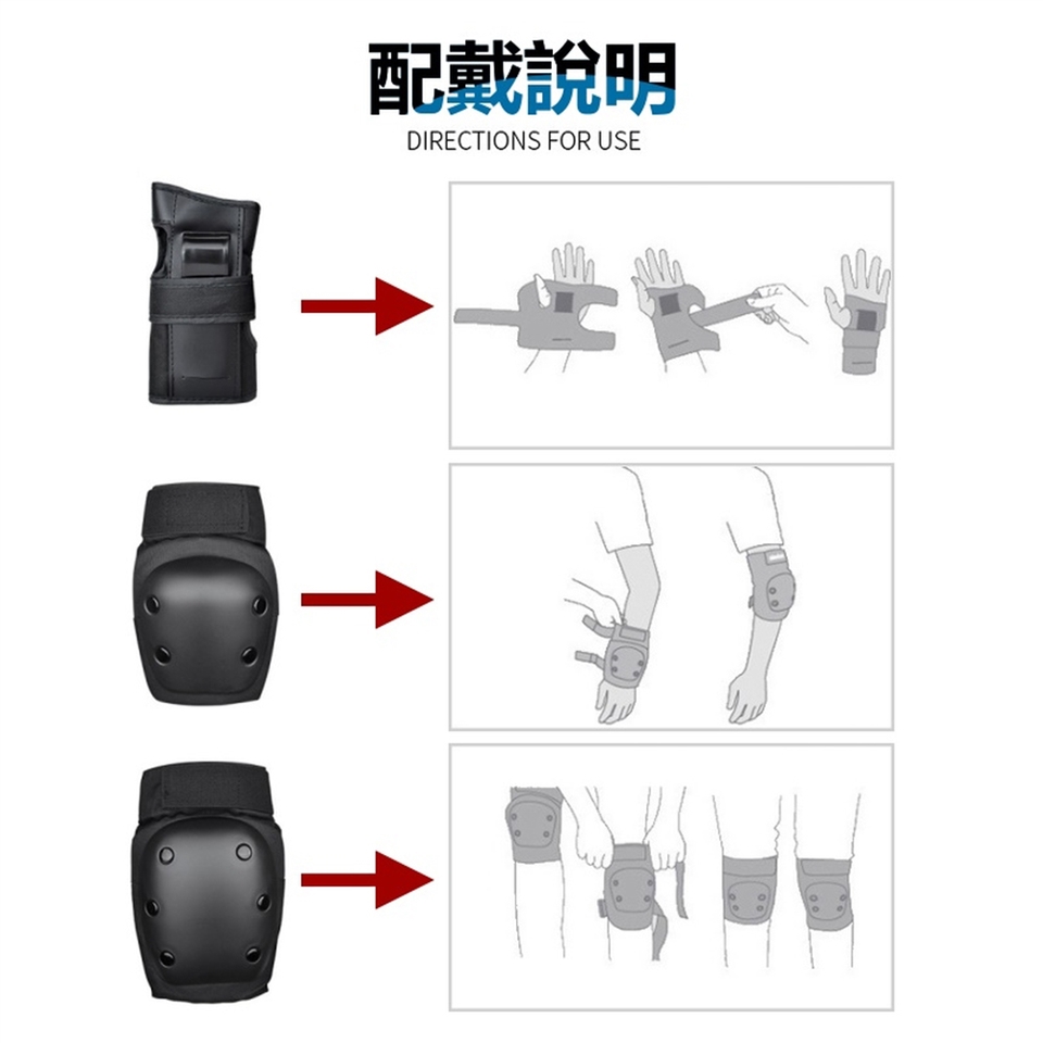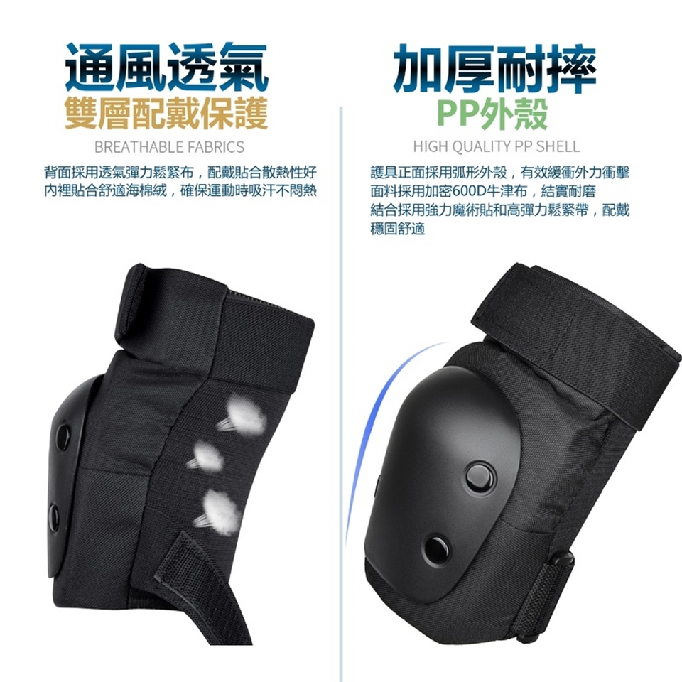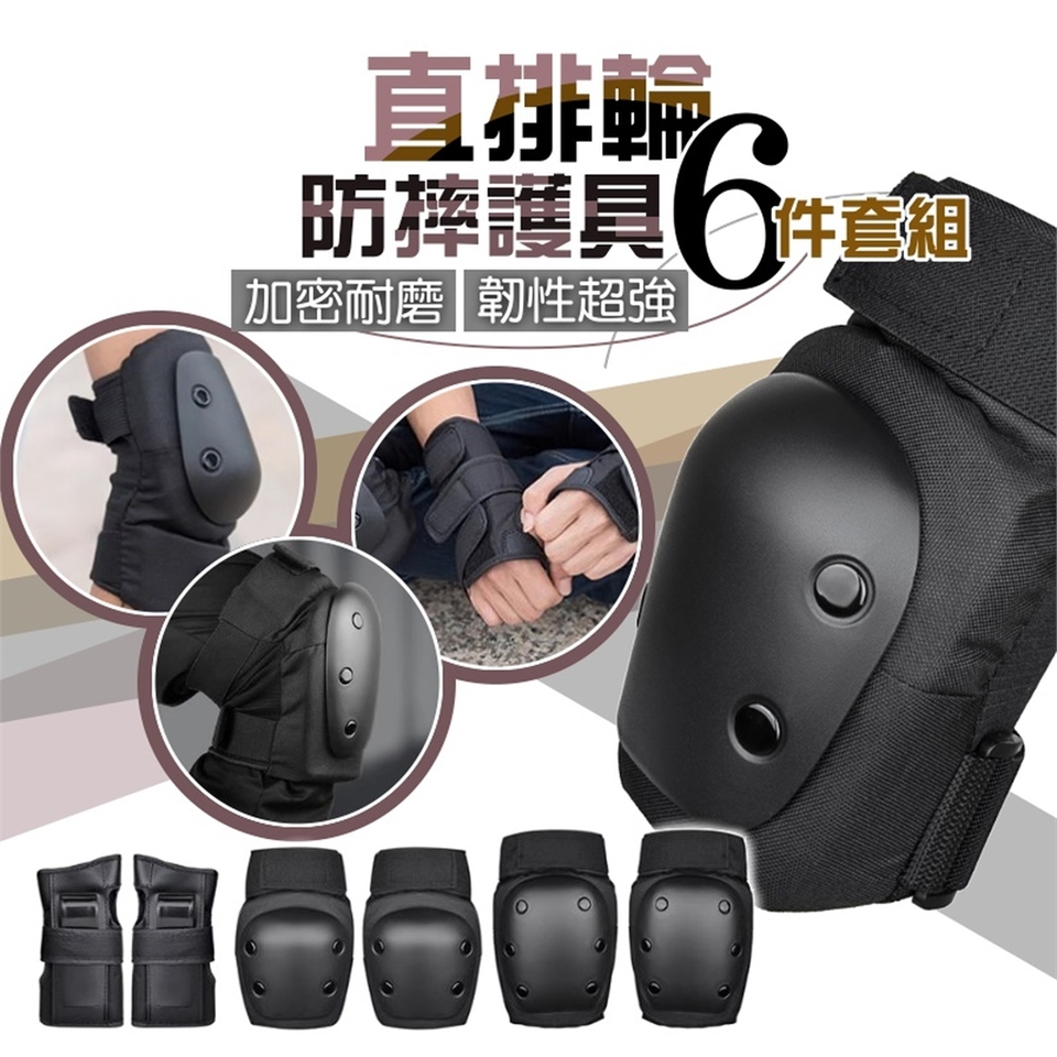 超值6件套組,安全材質,抗衝擊,防摔防磨,保護一次到位,透氣面料,親膚散熱快不怕悶熱,乾爽舒適,膝蓋防護,弧形外殼,有效防護重要關節,內部填充緩衝墊,有效減震,牢固魔術貼,強力黏合,貼身防護