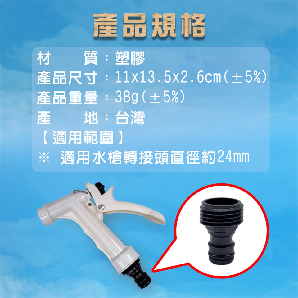 ※ 適用水槍轉接頭直徑約24mm