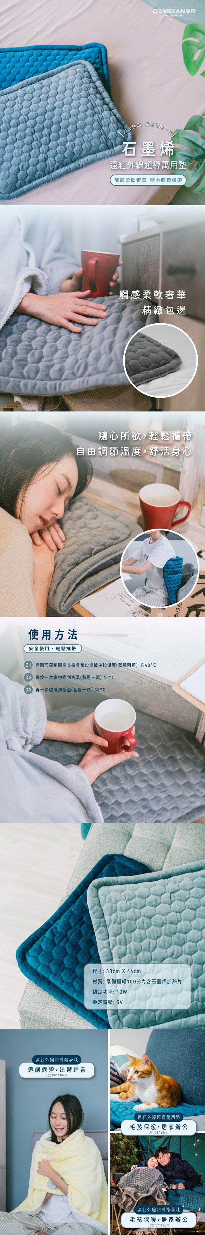 ◆ 石墨烯加熱毯 遠紅外線蓄熱 多用途保暖