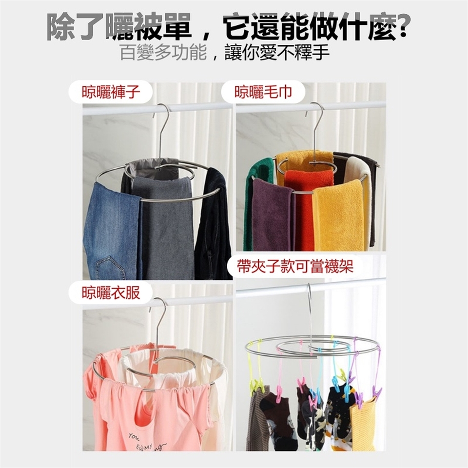 螺旋式設計,有效節省晾曬空間,360度全方位懸空通風,棉被均勻晾曬,透氣不潮濕,可拆卸折疊設計方便收納,加粗加厚鋼管,高承重力,不易變形,堅固耐用,噴速工藝,圓潤打磨,防鏽耐用