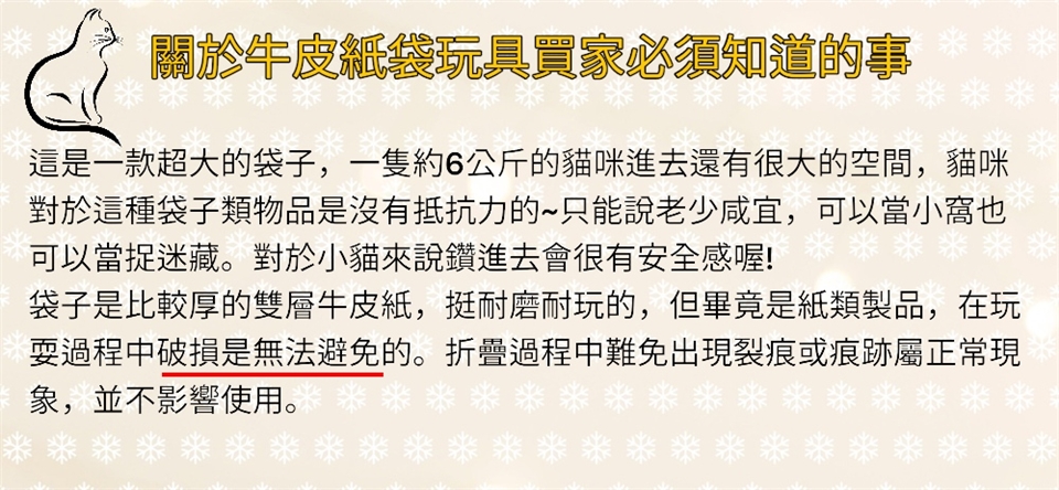 - 請勿將紙袋小窩放在潮濕環境中,以免受潮損壞。