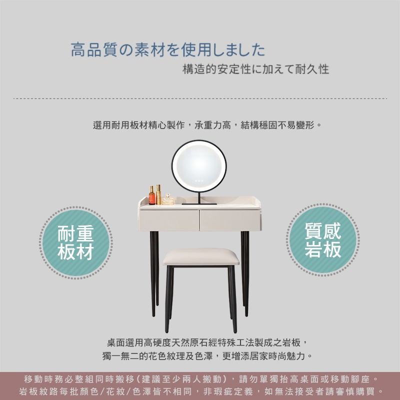 (1)岩板桌面紋路每批顏色/花紋/色澤皆不相同,非瑕疵定義,如無法接受者請審慎購買。