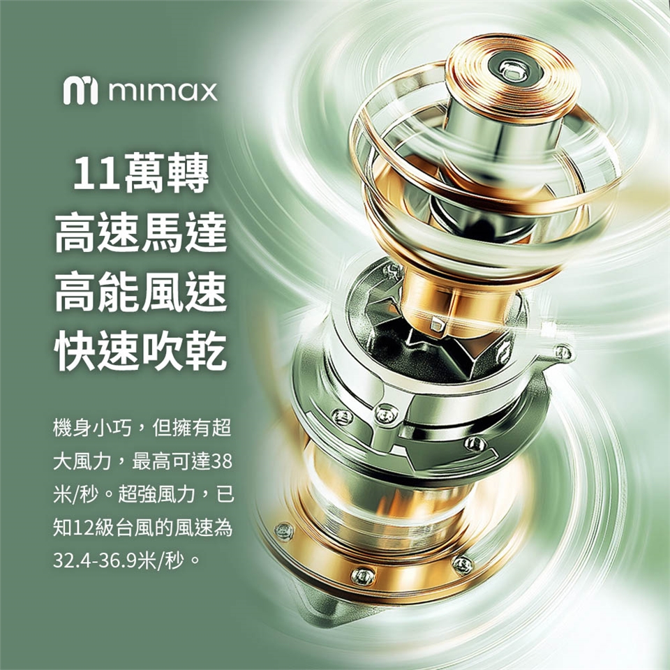 👍11萬轉無刷高速電機風力更強勁 吹乾只要10~25分鐘