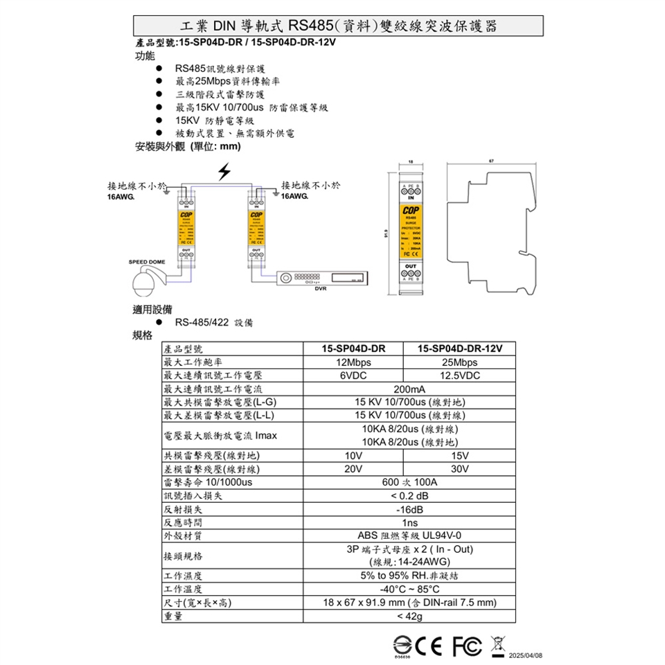 產品型號    15-SP04D-DR