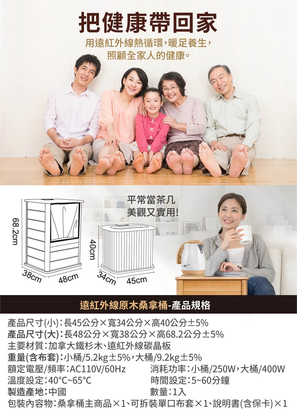 包裝內容物:桑拿桶主商品x1 +可拆裝單口布套x1+說明書(含保卡)x1