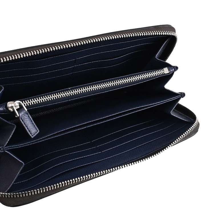 PRADA 熱銷長夾經典款,質感的經典金屬LOGO搭配防刮皮革,拉鍊開口,內有12信用卡夾層+3風琴式內層+3貼袋+1拉鍊零錢袋,高雅時尚設計,釋放出都會優雅的時尚風格,兼具耐用與典雅氣質。