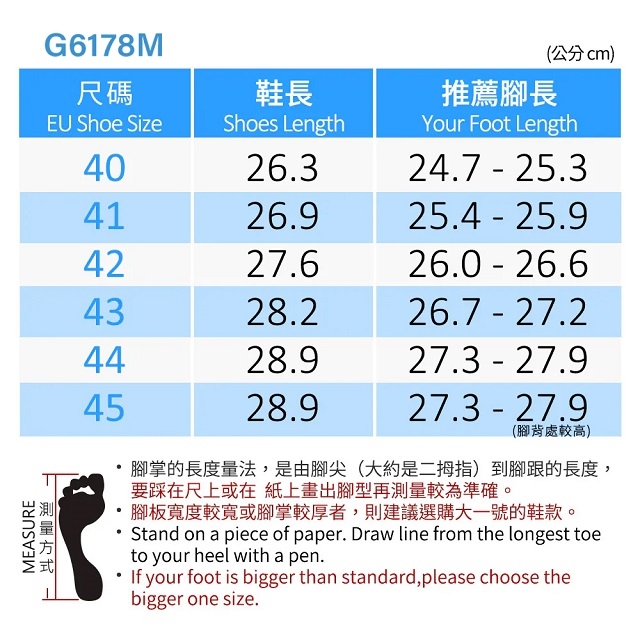 量一下自己的腳長和腳寬