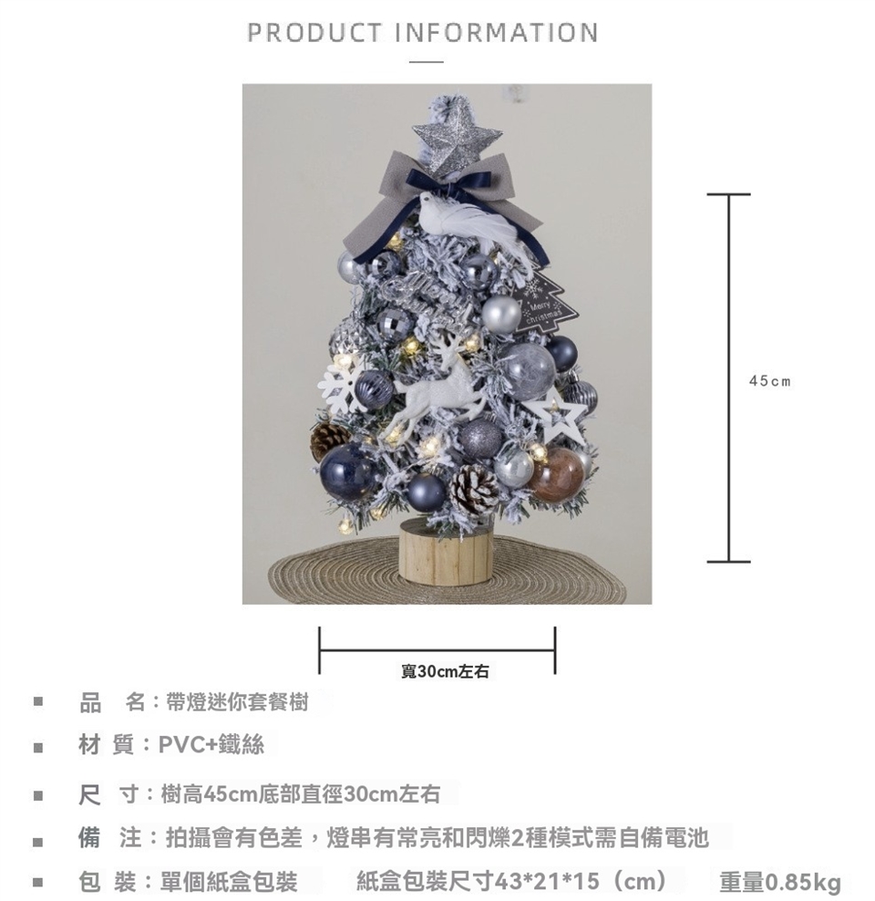【45cm】夢幻藍雪霧感帶燈聖誕樹(附掛飾)