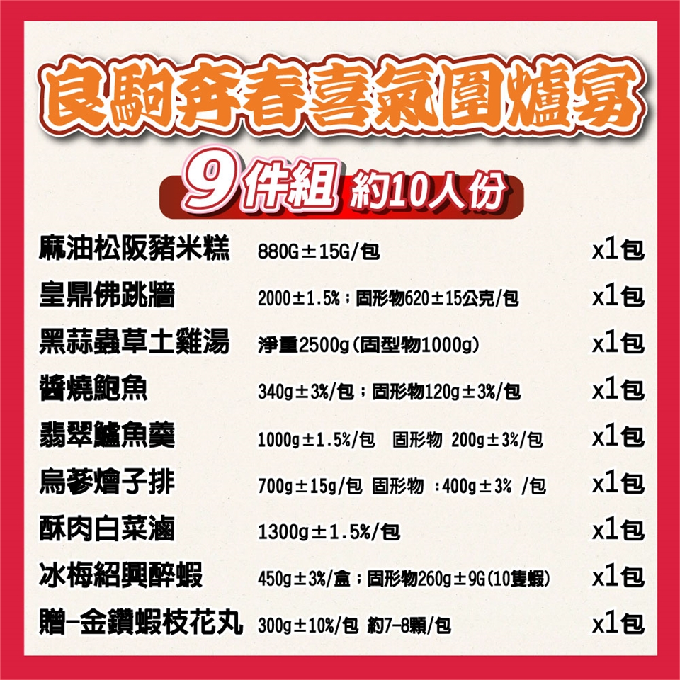 1. 接單限制:年菜商品配送限台灣本島,恕無法貨到付款。