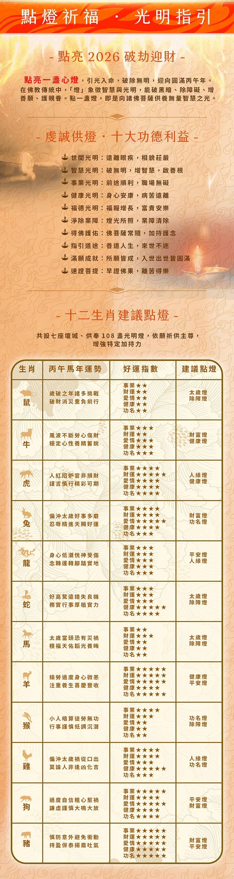 5.要點的燈種+祈福人名單:燈種+祈福人姓名&生辰年/月/日/時,請註明是國曆或農曆。