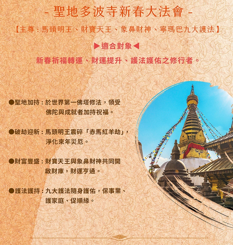 ※於2026/1/18前參贊,可參加2026/1/24~25普巴金剛除障大法會、 2026/2/17 (大年初一) 聖地祈福大法會、2026/2/28台灣接福旺運大法會