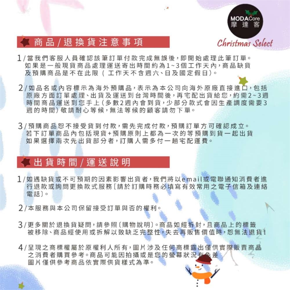 ※ 商品如經拆封且商品上之標籤被移除、商品經使用、或拆解以致缺乏完整性及失去再販售價值時,恕無法退貨!