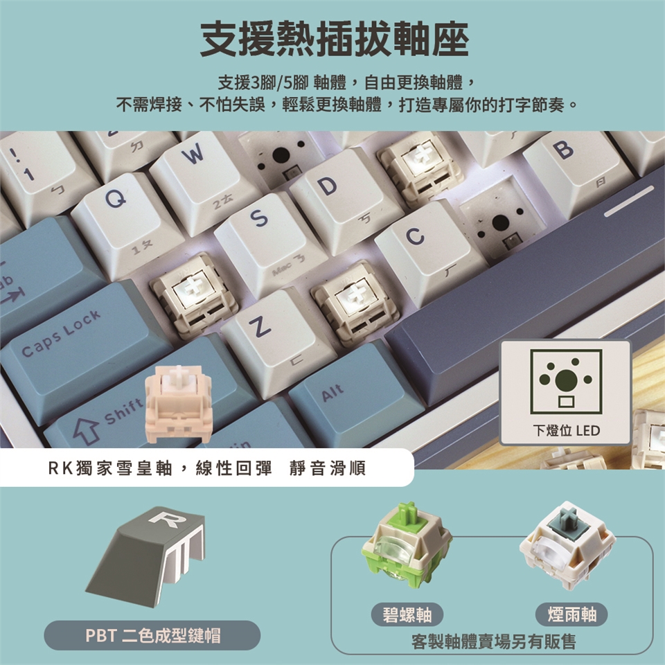 RK 目前主力無線機械鍵盤上,給玩家更多創意發揮空間,包括熱插拔、多樣貌的鍵帽、更多不同尺寸的鍵盤