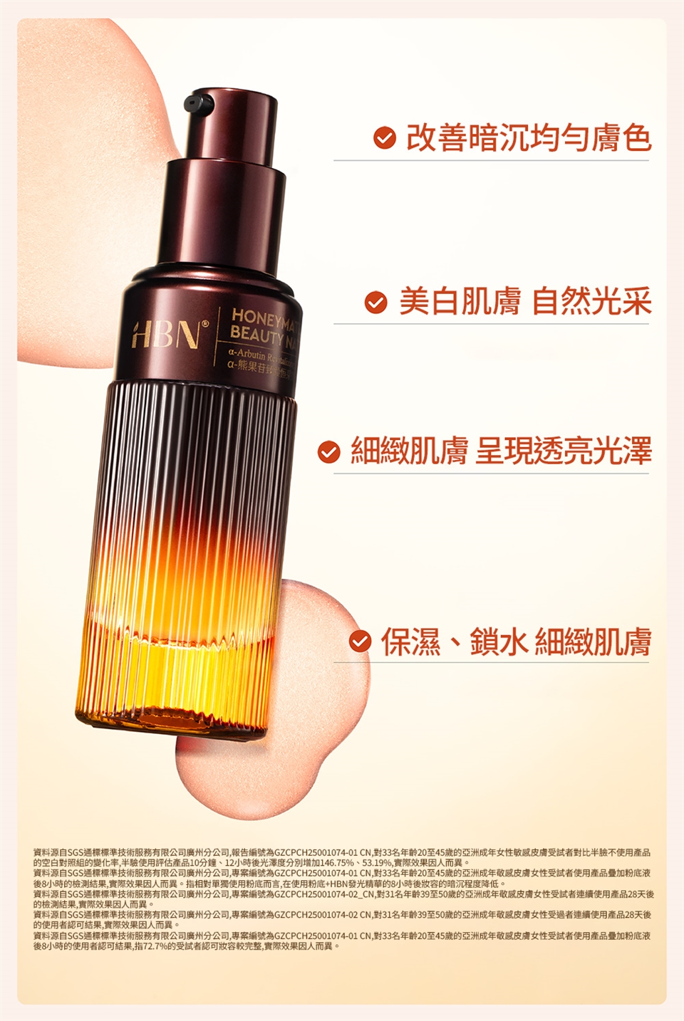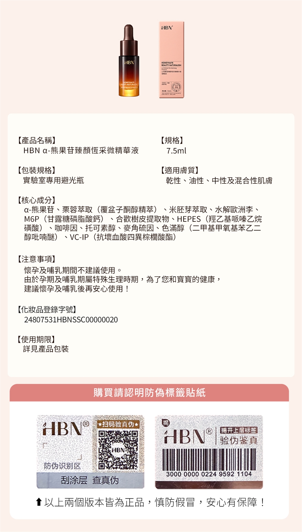 品名:【HBN官方】α-熊果苷臻顏恆采微精華液 7.5ml(發光精華)
