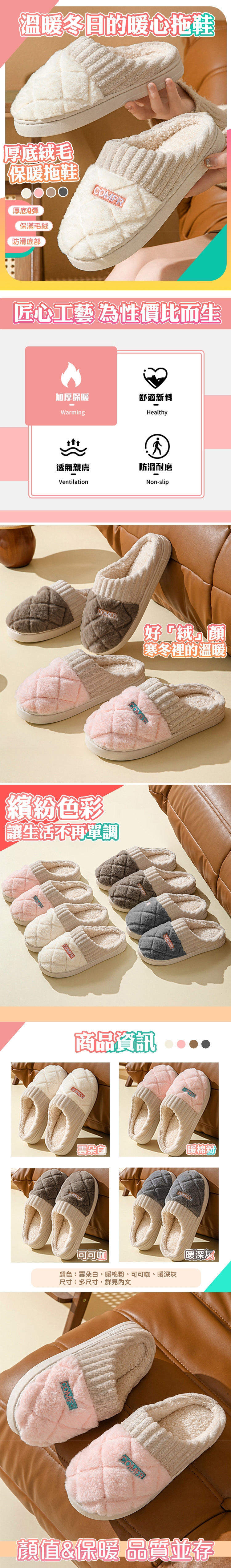 商品名稱:軟Q厚底毛絨保暖解壓止滑拖鞋-C