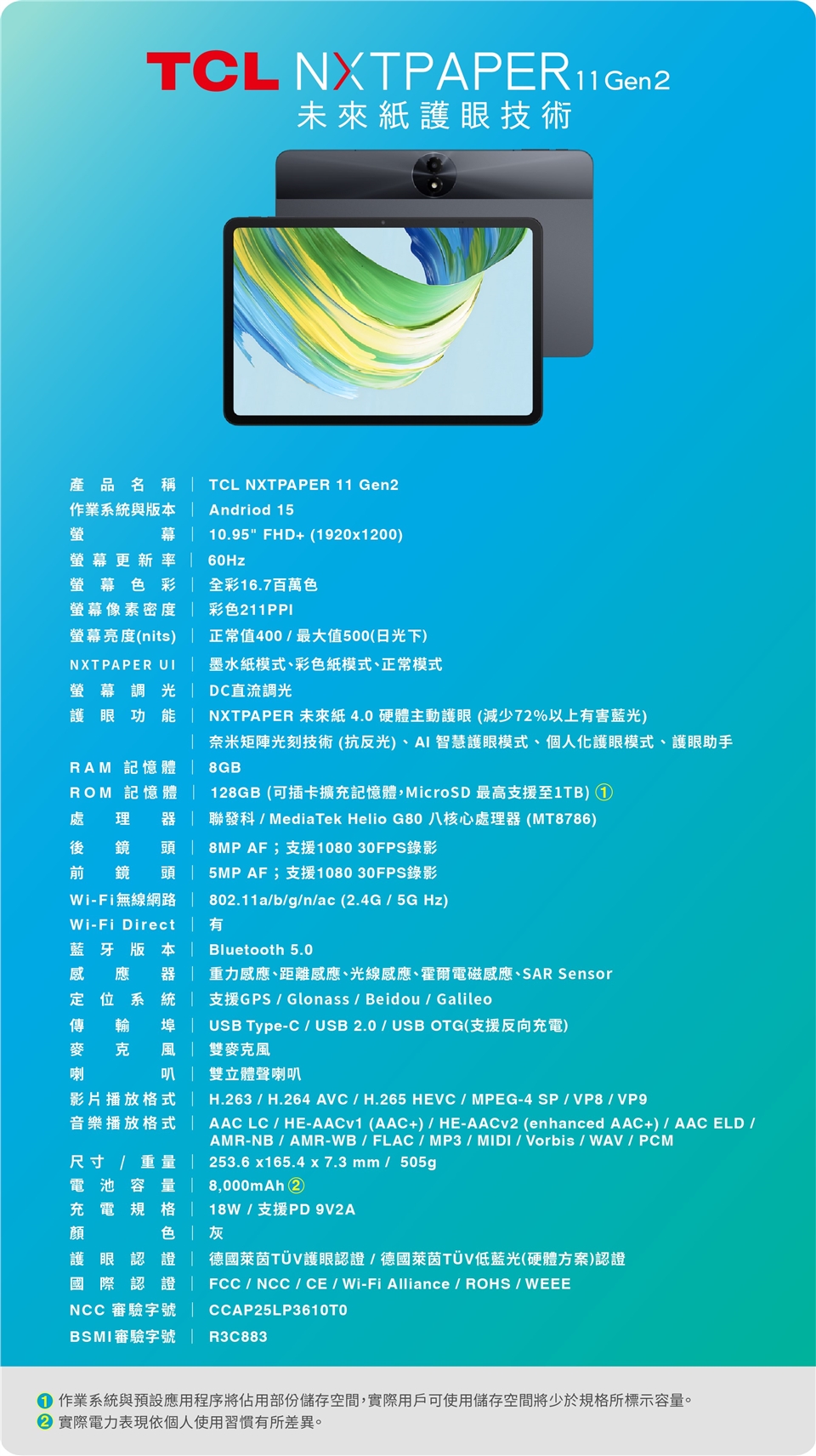 ●彩色紙感模式:閱讀漫畫、彩圖柔和不刺眼