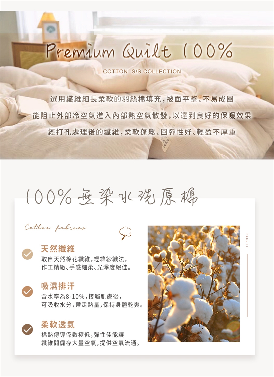 ◎ 整張纖維棉填充 + 精緻绗縫