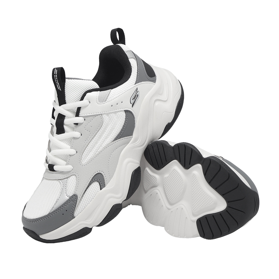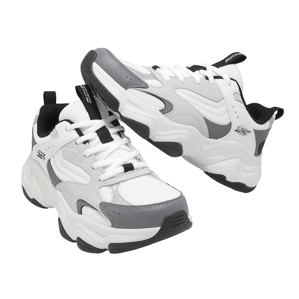 BOBS DIEGO系列,這款輕量休閒老爹鞋,以網布鞋面搭配皮面裁片,展現兼具透氣與耐用的設計,內建記憶型泡棉鞋墊,提供柔軟貼合的舒適腳感,造型時尚百搭,是日常逛街通勤的理想選擇。