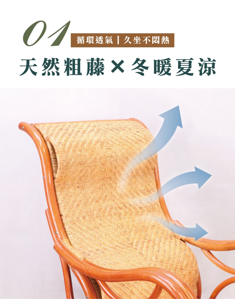 3. 粗藤為天然纖維,可能因氣溫高低有熱漲冷縮所產生裂痕的現象,天冷即收縮,屬材質自然特性,也因此而有冬暖夏涼的優點。