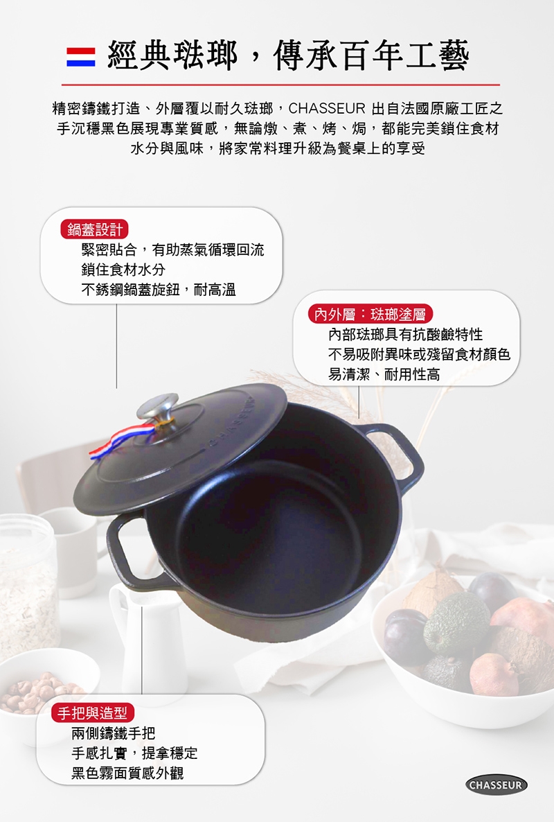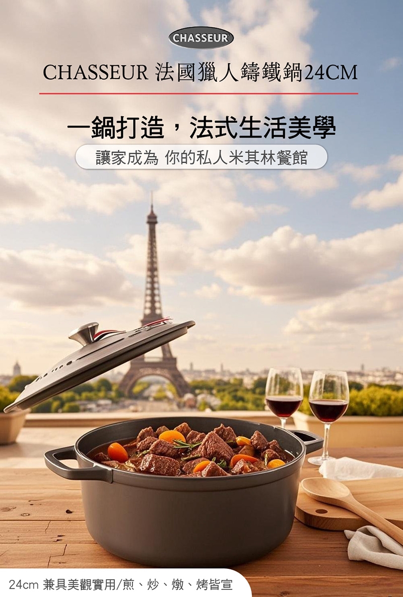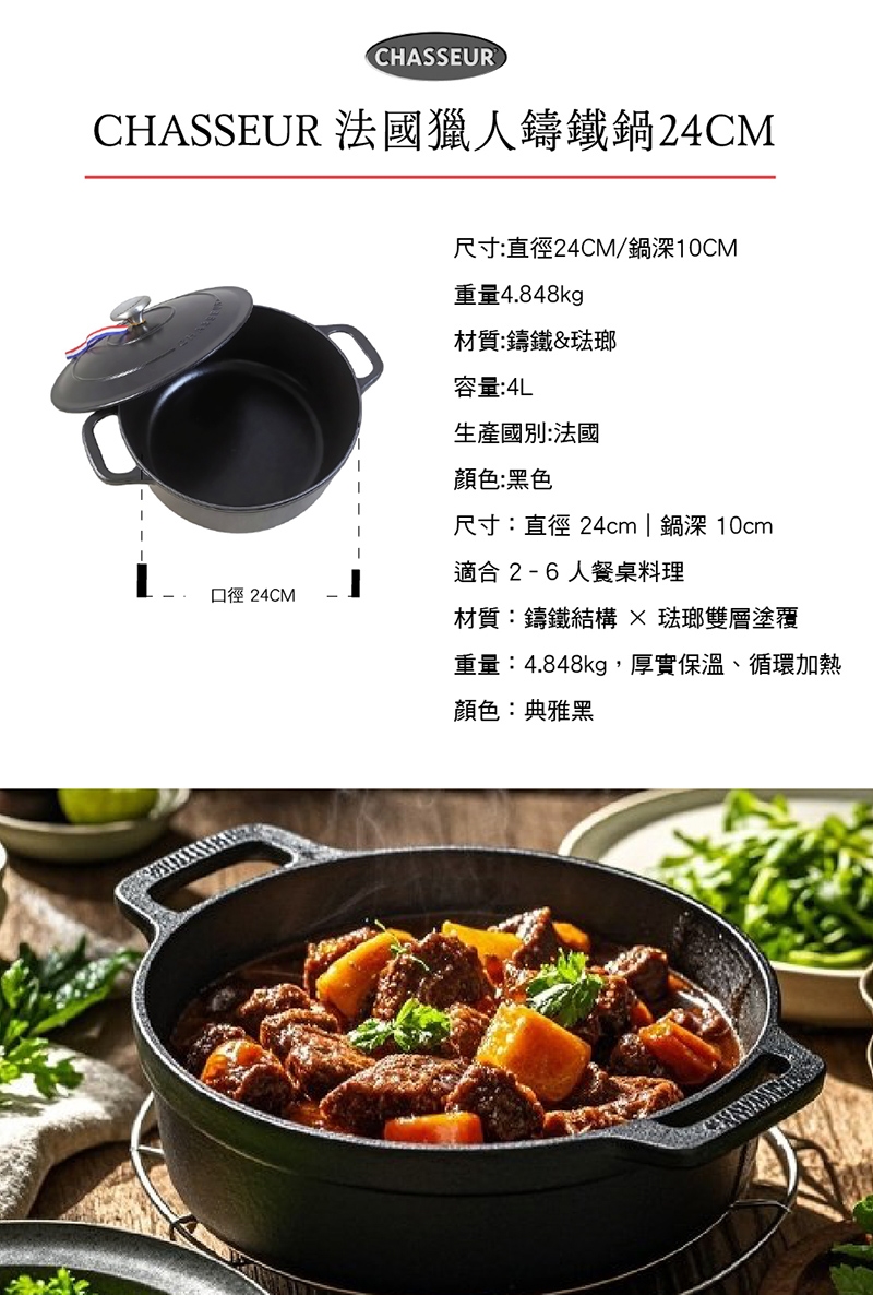 【CHASSEUR】法國獵人鑄鐵鍋24CM黑色