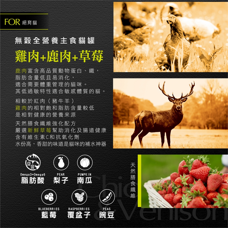 無穀全營養主食貓罐 雞肉+鹿肉+草莓