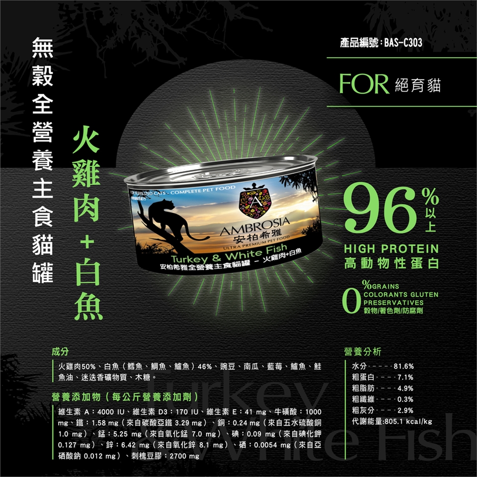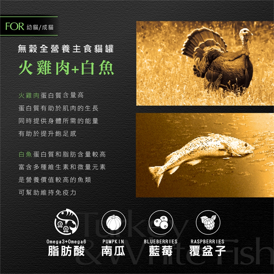 無穀全營養主食貓罐 火雞肉+白魚