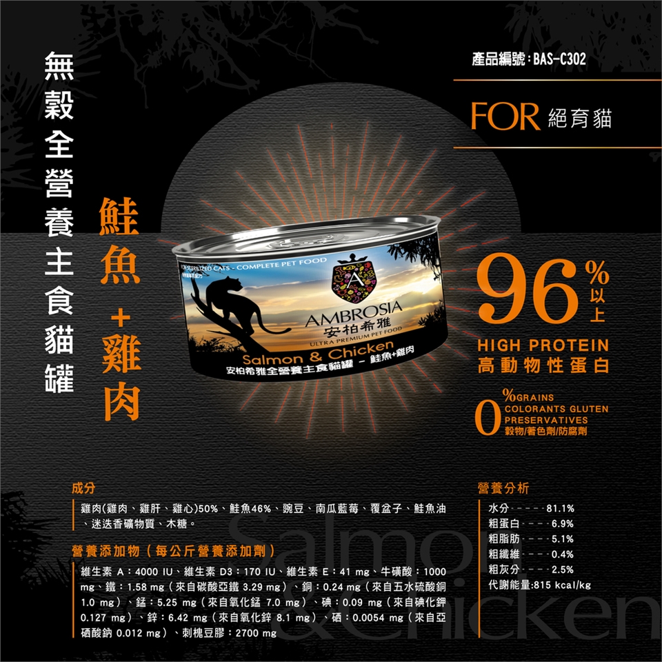 無穀全營養主食貓罐 鮭魚+雞肉