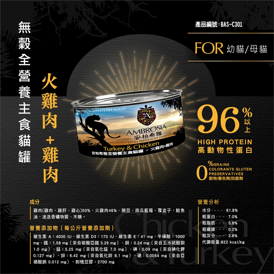 無穀全營養主食貓罐 火雞肉+雞肉