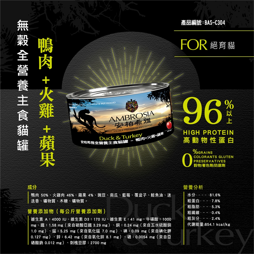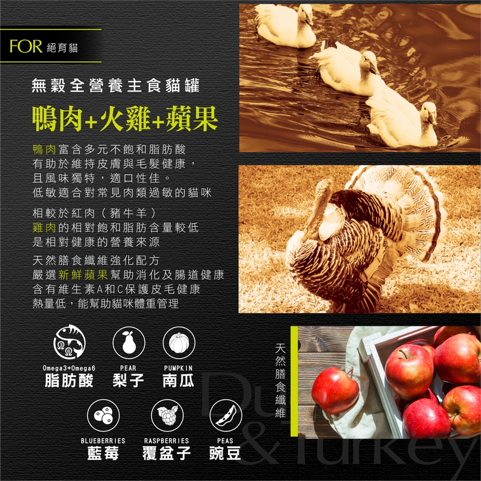 無穀全營養主食貓罐 鴨肉+火雞肉+蘋果