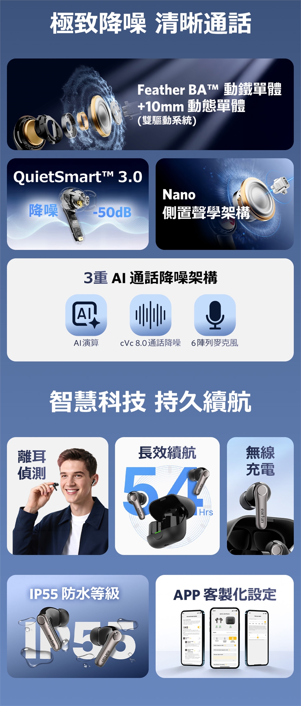 - 頂級降噪|QuietSmart 3.0 自適應降噪高達 50dB