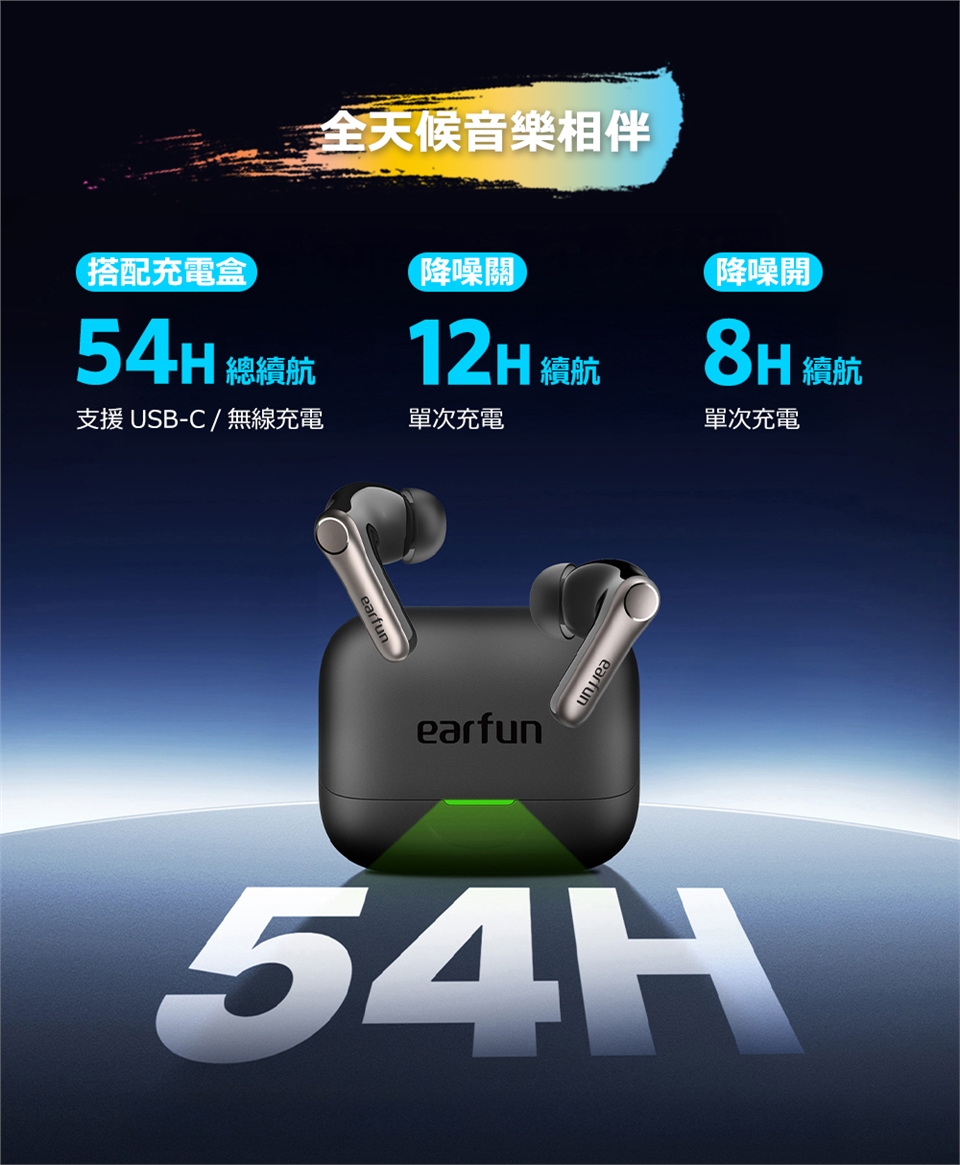 - 長效續航|單次電量12小時,搭充電盒可達54小時