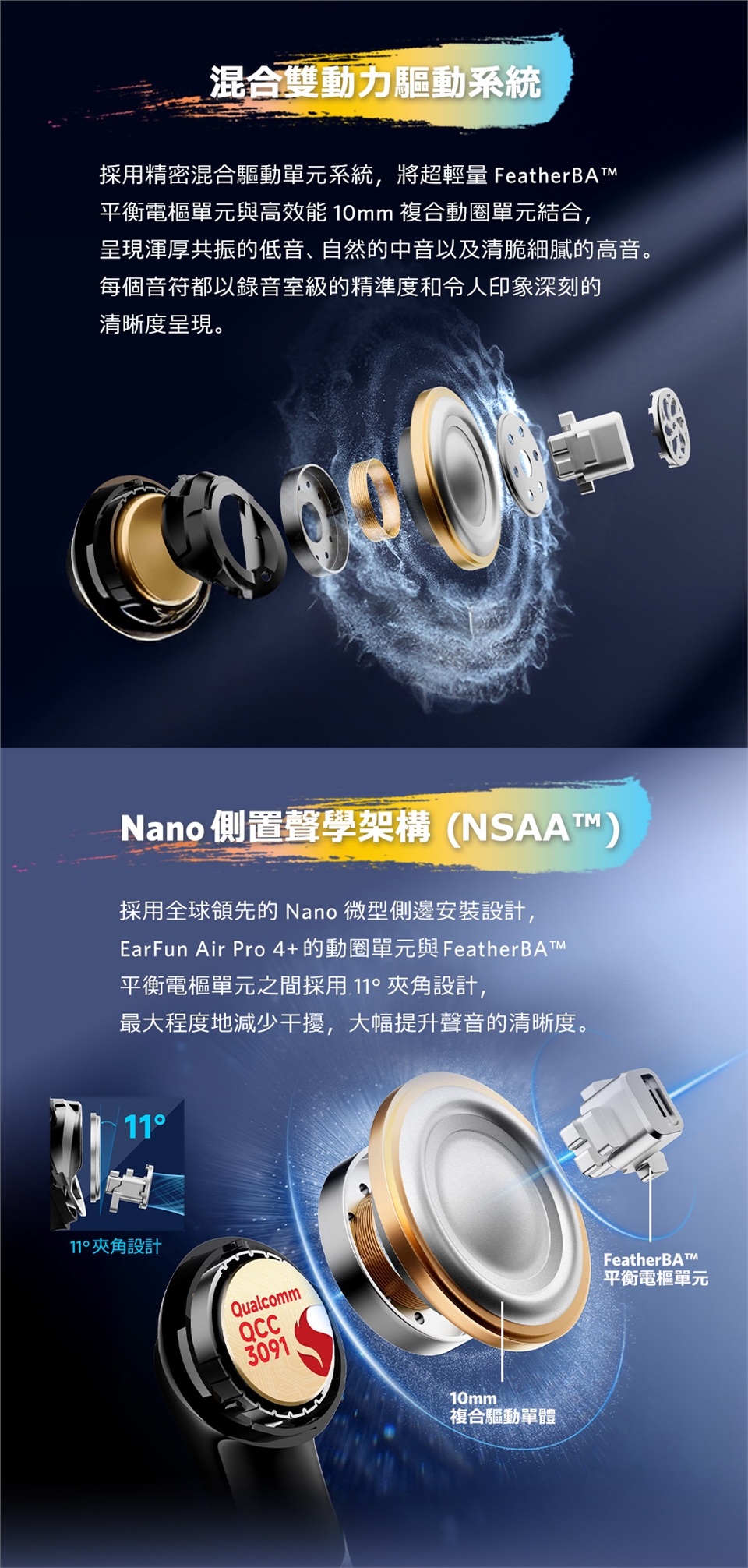 - 雙驅共鳴|超輕量動鐵+10mm 動圈單體