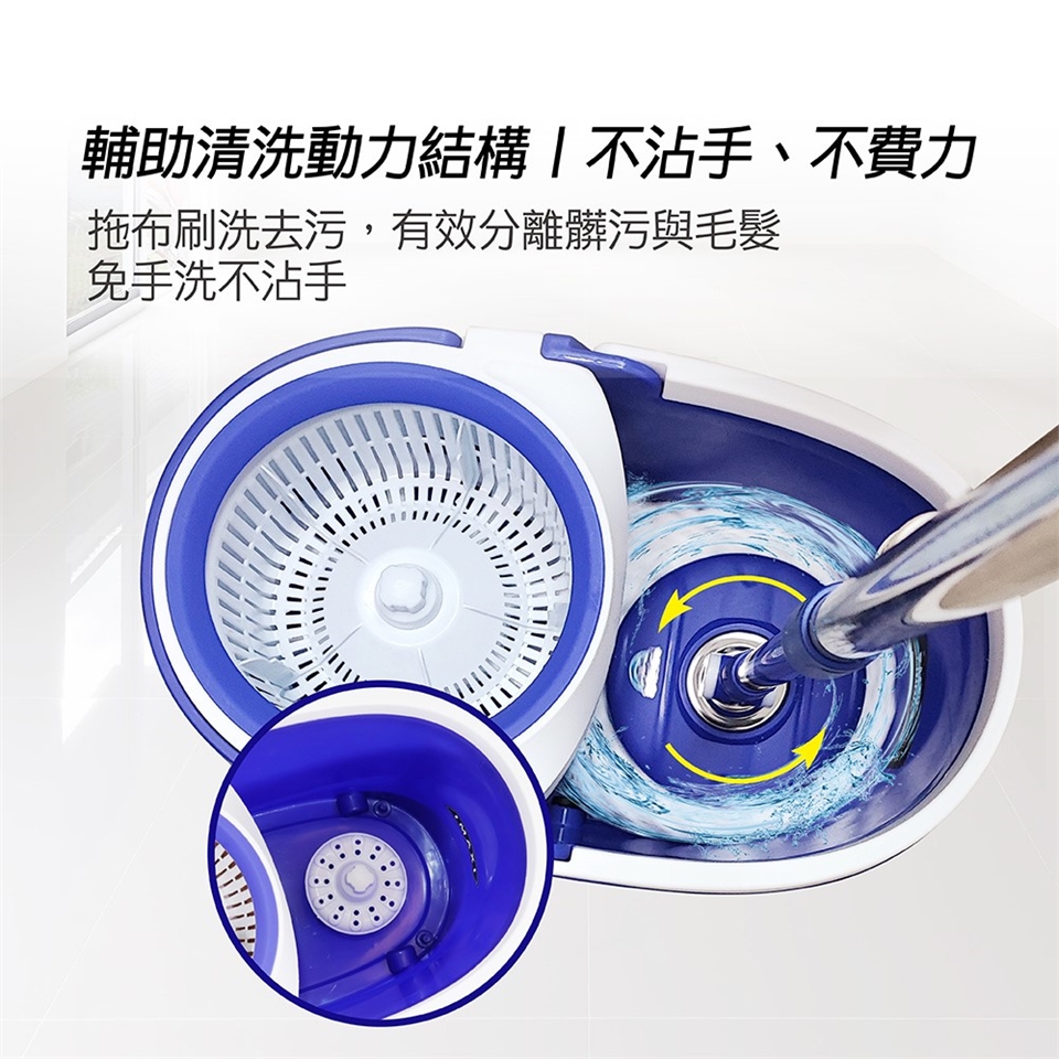 桶內設有輔助清洗結構,可刷洗拖布去汙,有效分離髒污與毛髮,免手洗、不沾手,清潔力再升級。