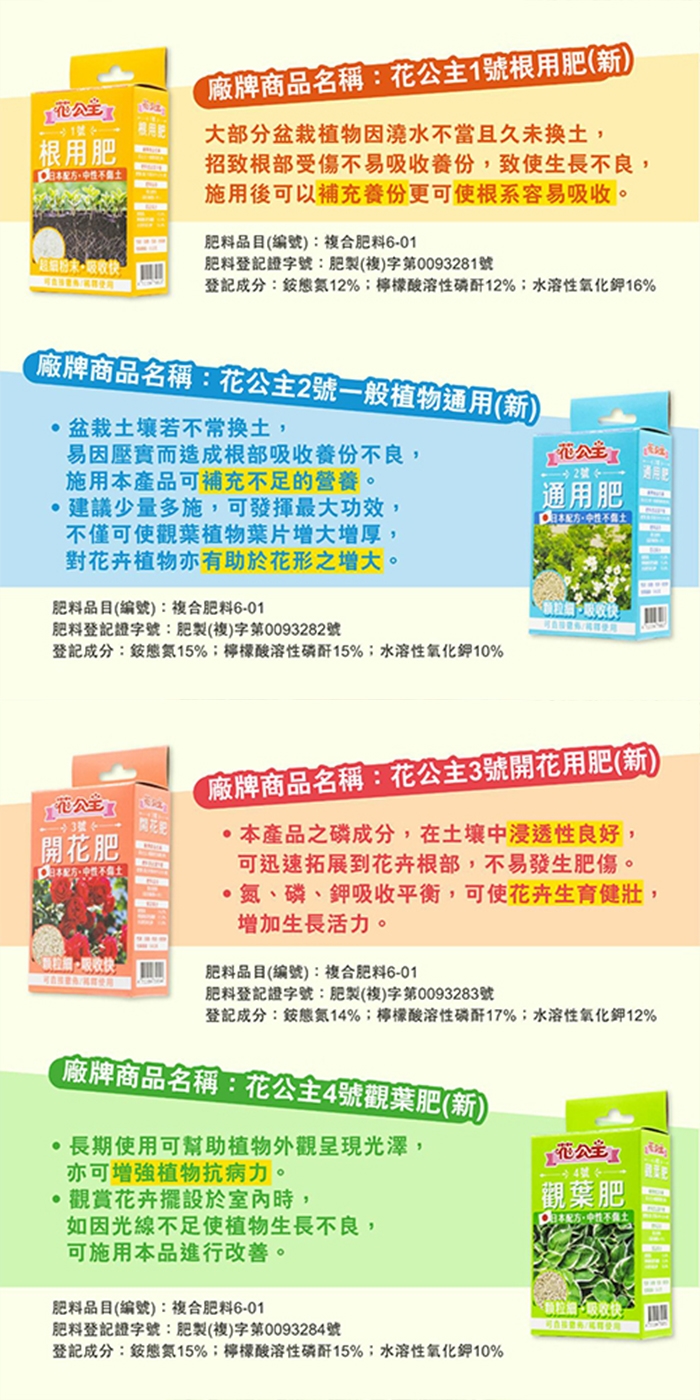 ◎ 肥料登記證字號:0093281、0093282、0093283、0093284