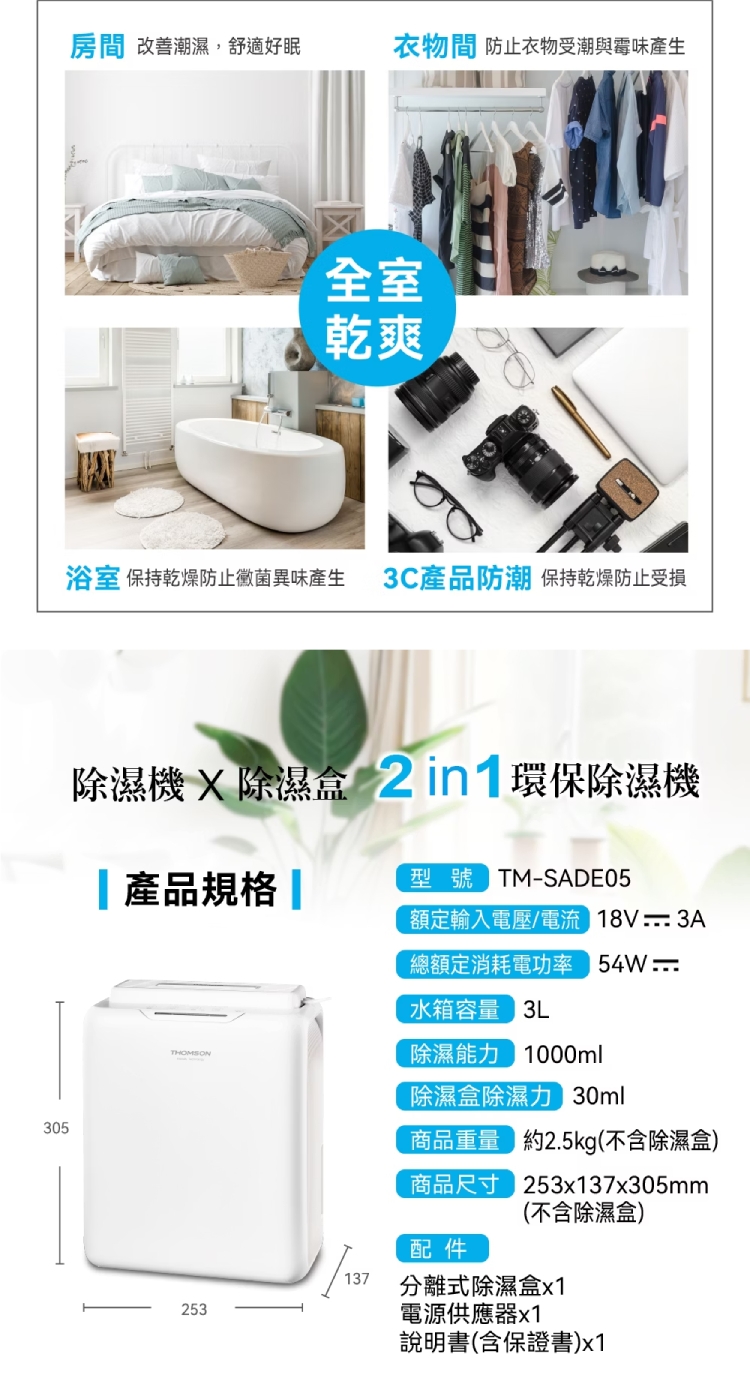 ◎ 配件:分離式除濕盒*1、變壓器、說明書(含保證卡)