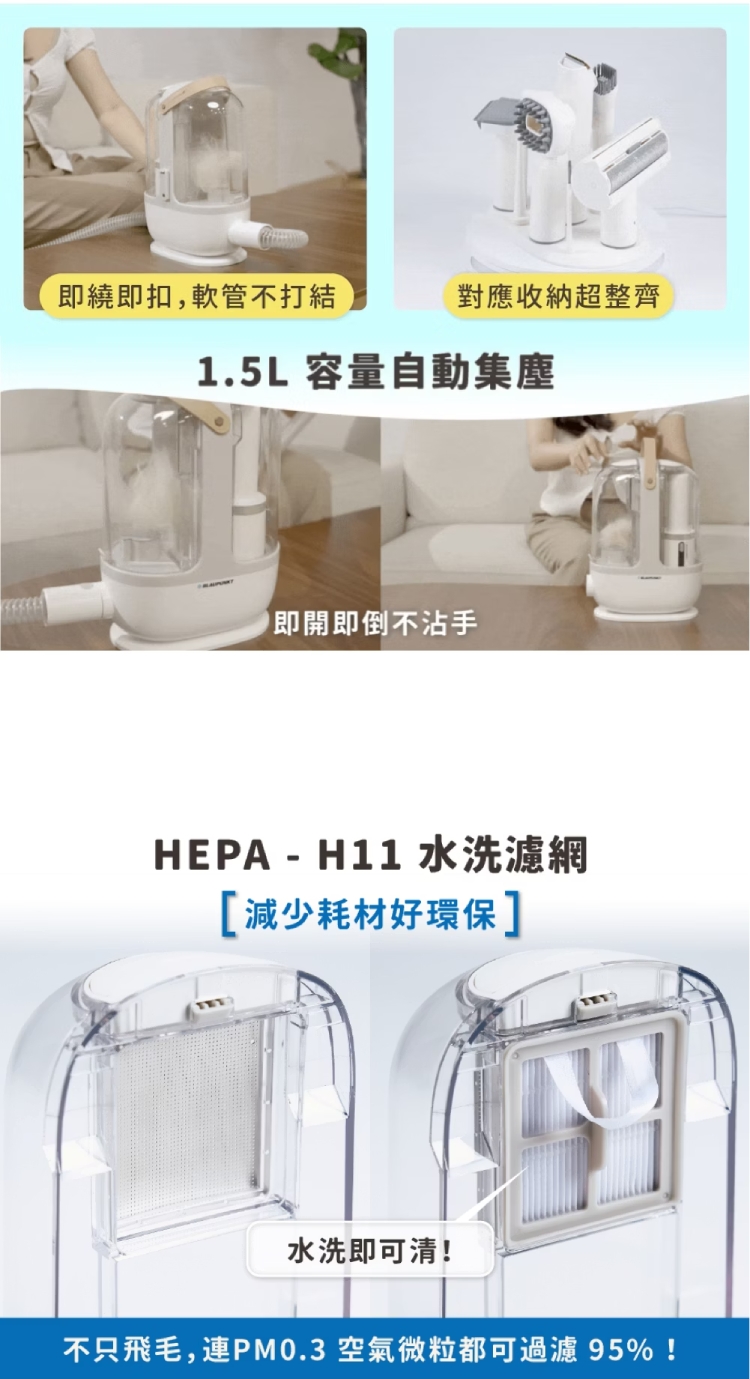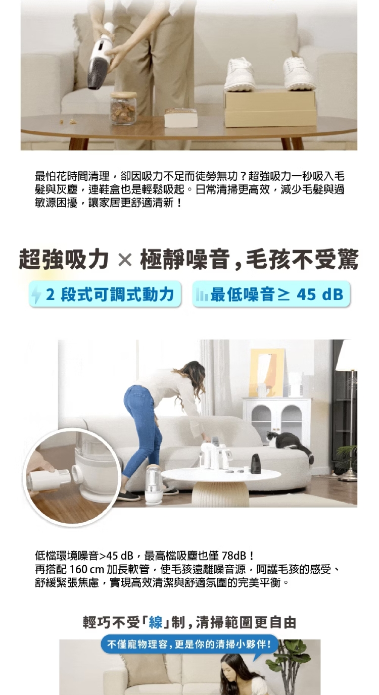 ★ 二合一功能,寵物專用+手持吸塵器