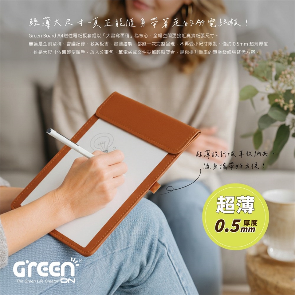 【Green Board】A4磁性電紙板套組 進階收納組 Pro|電紙板x1+手寫筆+皮革夾