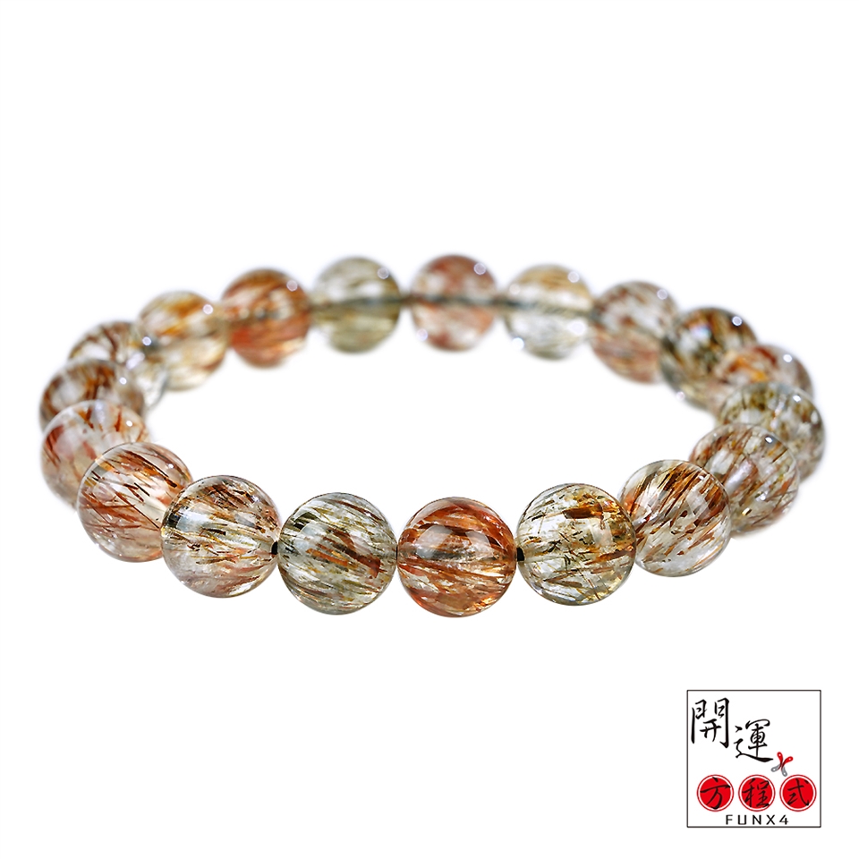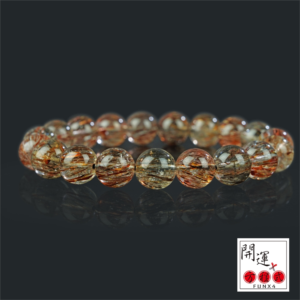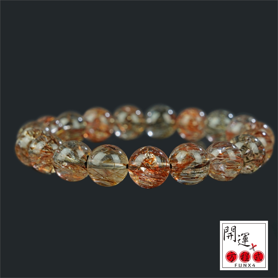 黑金超 (Black Gold Super Seven Quartz),是水晶界的新寵兒。在水晶裡共生黑金色與金銅色的絲礦,於光線照射之下,它會閃耀出燦爛的光芒,與單色系的「鈦金」、「銅鈦」等類似的水晶中,其最大的不同在於「雙色性」,一顆晶體同時擁有黑金與銅金的光芒。內含黃磷鐵礦、金紅石、針鐵礦、纖鐵礦,而所謂的上品,就是要絲多、綿少、晶體淨透,如果絲少,閃耀度也會減少,綿多,會掩蓋閃耀度,晶體淨透會增加絲體閃耀的光輝。
