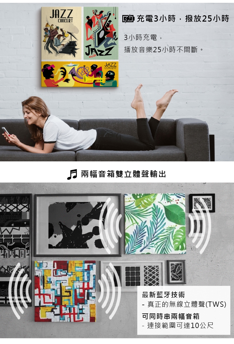 - 藍牙 TWS: 兩個揚聲器同步配對