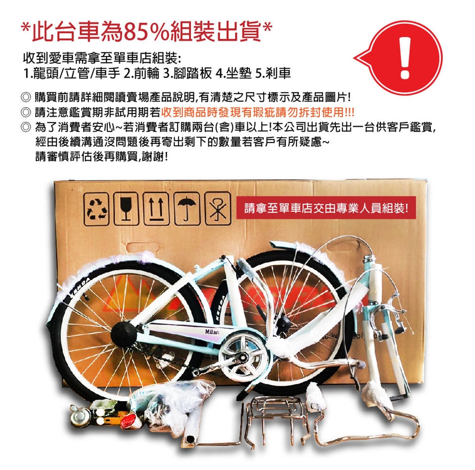 若沒有組裝單車經驗的顧客 請將車拿至車店交由專業人員組裝!