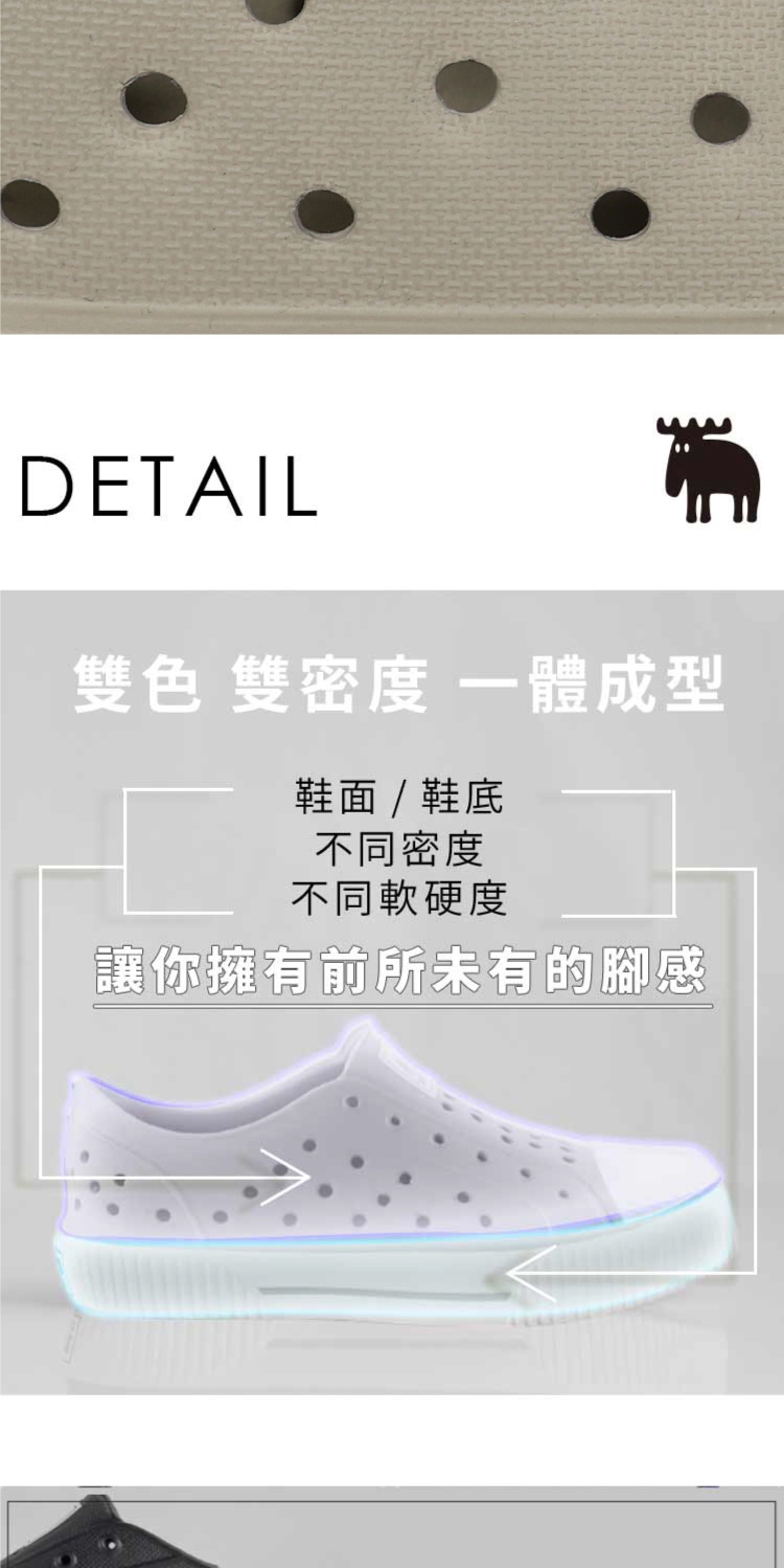 ■ 雙色雙密度EVA材質一體成型,輕量耐穿不易變形